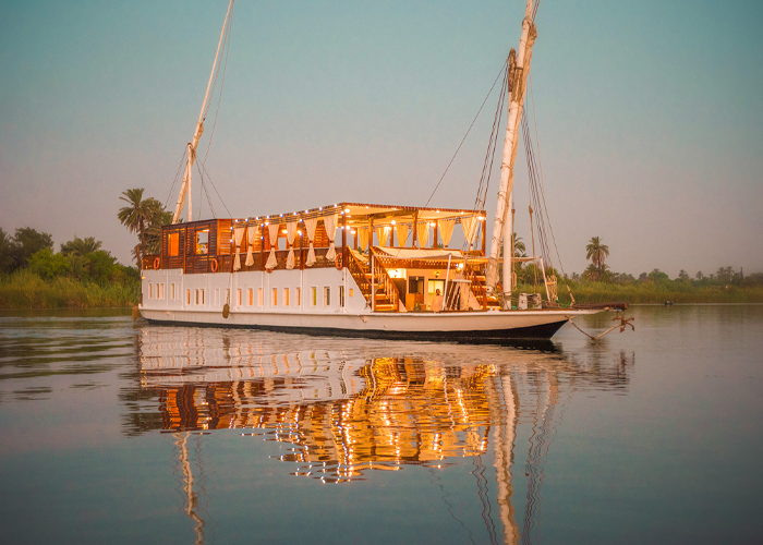 Sonesta Princesses Golden Nile Cruise has been offering unparalleled vacations on a Nile cruise since February 2009. The 7 Nights Luxor-Aswan cruise brings you back to a simpler and more beautiful time on the Nile. There are 5 cabins, 2 suites, an oriental outdoor jacuzzi, a spacious sundeck, and a modern standard room. Each house offers a private bathroom, climate control, hair dryer, minibar, safety deposit box, plasma TV, movie channels, and complimentary breakfast, lunch, and dinner. All units have private patios—Daily Nile River cruises from ancient Egyptian ruins.